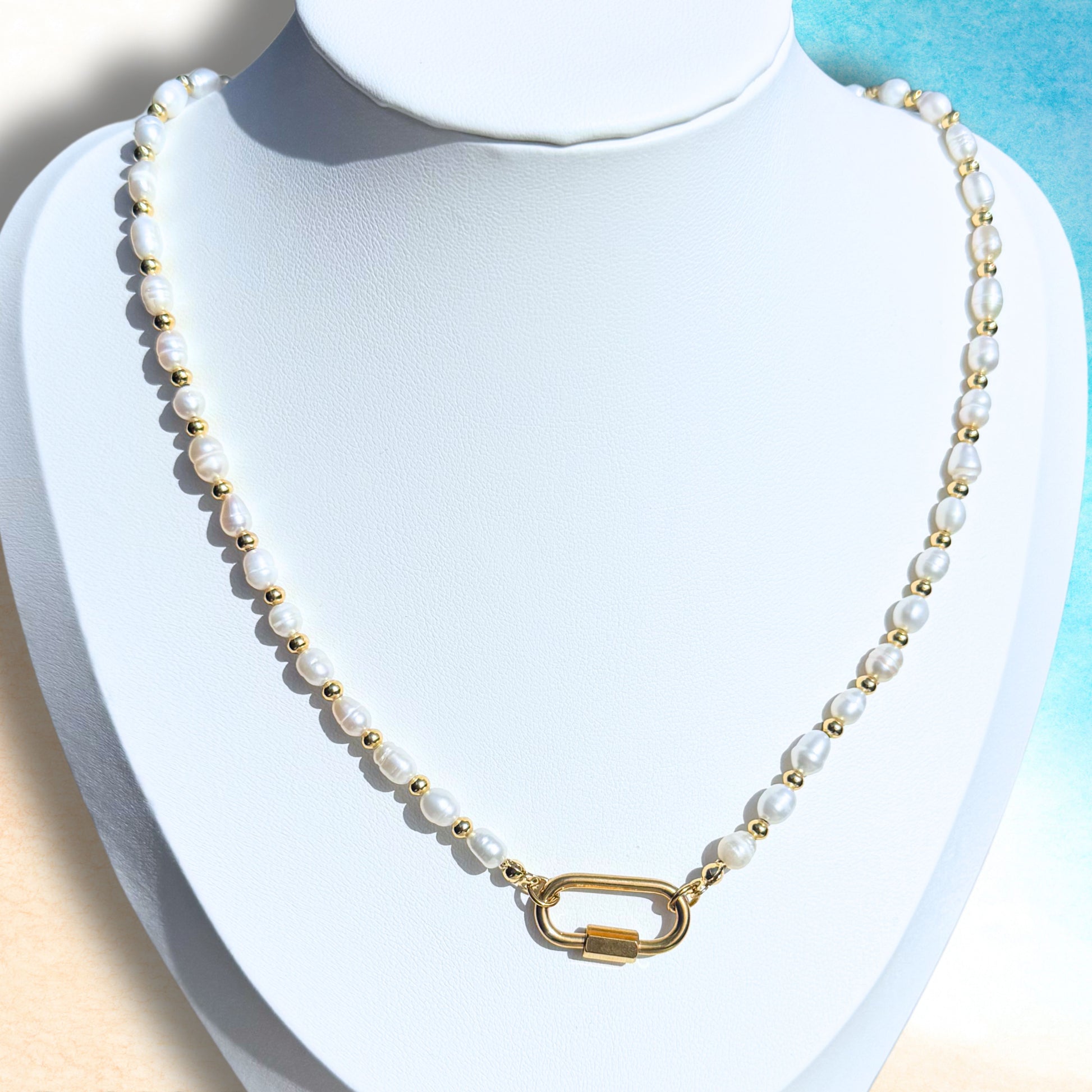 Baby Pearls Charm Clip Necklace - hand beaded dainty freshwater pearls with a 18k gold PVD plated charm clip. To add your own charms, visit the Charm Bar page and curate your stack. This necklace is ~16" and comes with a 2" extender.